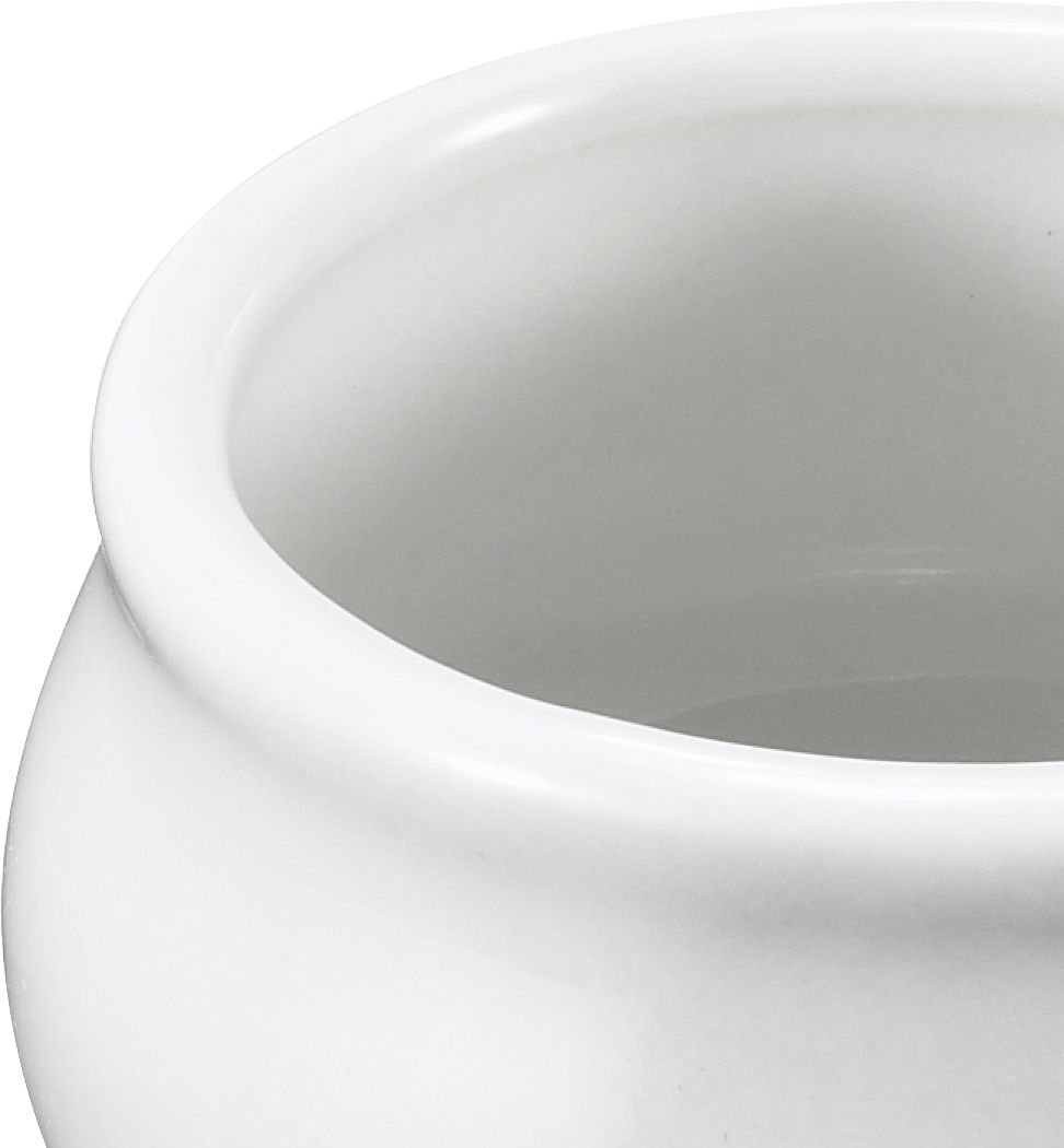 Browne 2 Oz White Butter/Sauce Pot, a versatile addition to your kitchen and dining arsenal. Crafted from durable stoneware, this pot is designed for both functionality and aesthetics, making it an excellent choice for both home and professional use. With a diameter of 2.3 inches and a height of 1.3 inches, this pot offers a compact yet accommodating size, perfect for serving individual portions of butter, sauces, or condiments. Its 2 oz capacity allows you to precisely control portions while adding an elegant touch to your table setting. The stoneware material ensures that this pot is oven, microwave, and dishwasher-safe, providing versatility and convenience for various cooking and serving needs. Whether you're melting butter for drizzling over popcorn or presenting a signature sauce alongside your culinary creations, this pot is up to the task Designed with quality and practicality in mind, the Browne 2 Oz White Butter/Sauce Pot is a durable and stylish choice that complements any table setting. Whether you're a professional chef or a home cook who values both form and function, this pot is sure to enhance your dining experience. Its versatility, ease of use, and elegant appearance make it a valuable addition to your kitchen collection.