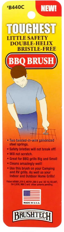 The Brushtech 7" Safety Double-Helix Bristle-Free Mini BBQ Grill Brush is designed to deliver powerful grill cleaning without the risks associated with traditional bristle brushes. Featuring a compact design and innovative double-helix galvanized steel springs, this brush bends and adapts to grill grates to remove grease and burnt-on food effectively while maintaining its shape. Safe, durable, and versatile, it’s ideal for grills of all shapes and sizes in both residential and commercial settings.