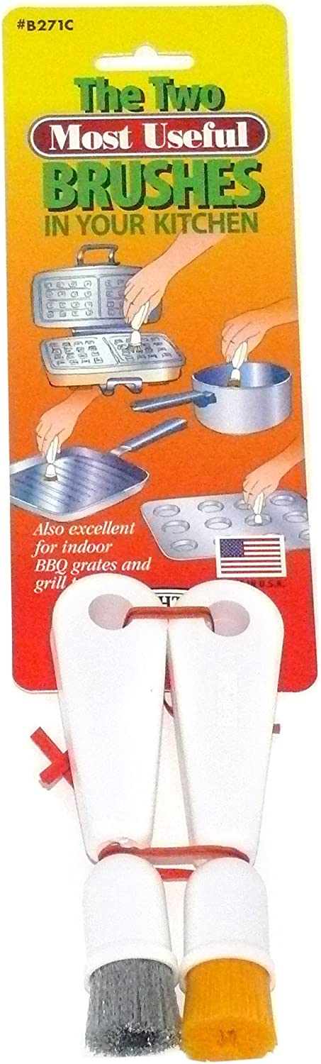 These two brushes are the best tools in your kitchen for removing overcooked or charred food stuck to cooking surfaces. For cast iron, aluminium and other non-delicate surfaces use the steel brush. For coated and delicate surfaces use the plastic brush.