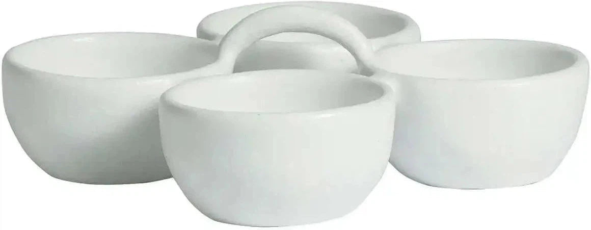 Bugambilia - Mod 10.1 Oz White Round 4 Division Condiment with Handle With Glossy Smooth Finish - MJ601-MOD-WW