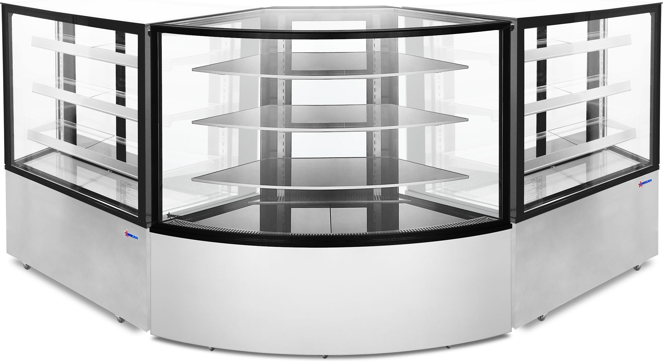 Introduce your business to a new level of product display with the Omcan 59" Corner Glass Floor Refrigerated Display Case, designed for bakeries, cafes, and retail shops that want to elevate their presentation. With its spacious 16.78 cu.ft. capacity, this stylish and practical display case ensures your products are showcased beautifully and kept at the perfect temperature.