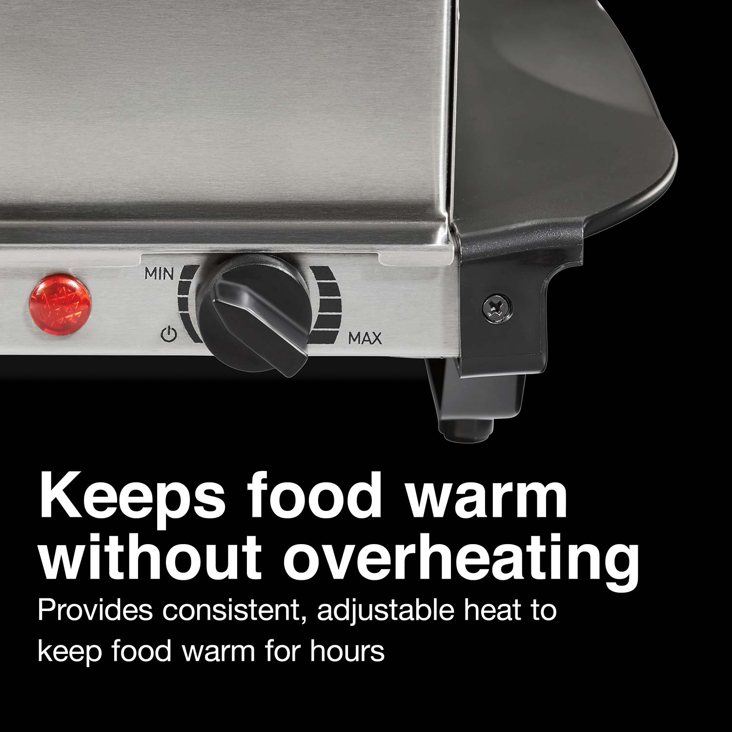 - Adjustable Heat Settings: Provides consistent, adjustable heat to keep food warm for hours without overheating. Simply adjust the temperature with a turn of the dial.