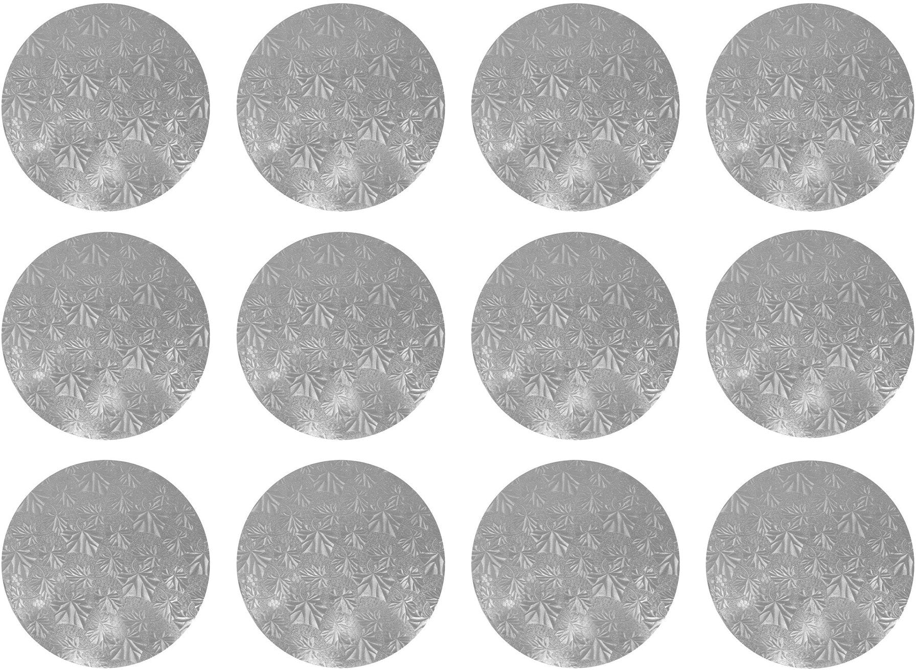 Crafted from high-quality materials, this round silver cake board boasts a smooth and pristine surface. Its flawless finish not only enhances aesthetic appeal but also provides a hygienic and food-safe platform for your cakes. Certified food-grade, this board complies with stringent standards for safe use in the food industry. The package includes 12 boards per case, ensuring an adequate supply to cater to various baking projects and demands. Whether you're a professional baker in need of a consistent stock of cake boards or a home baker seeking quality presentation solutions, this case ensures you have an ample supply at your disposal.