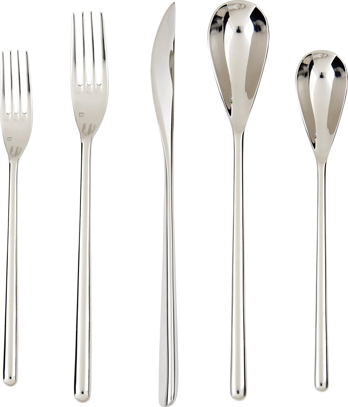 Delicately sculpted for an elegant feel, this modern design delights the eye and adds flair to your table. Set includes: 4 tea spoons, 4 desert/soup spoons, 4 table forks, 4 salad forks and 4 table knives.