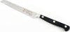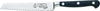The Messermeister Meridian Elite Scalloped Utility Knife is a thin straight 5" blade with a scalloped flat camber and a round tip that is ideal for cutting small bakery items such as cakes, bagels and breads.