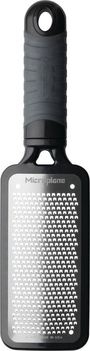 The Fine Grater, terrific for zesting, also makes a fast melting powder for pastas. All Microplane® Home Series graters offer a broad grating surface for more room to efficiently get the job done. All are dishwasher-safe and feature razor-sharp surgical-grade stainless steel blades.
