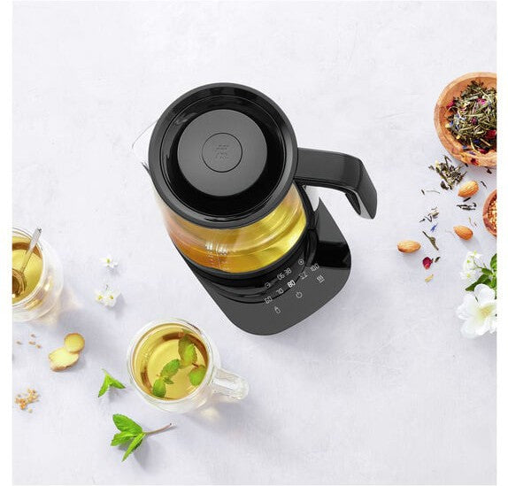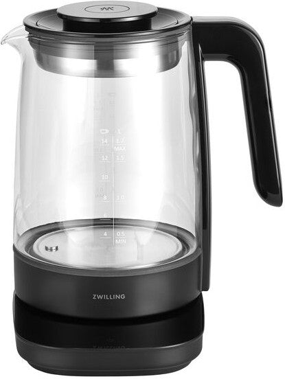 Zwilling - Enfinigy Black Glass Prog Kettle, the epitome of elegance and functionality for the perfect cup of tea or coffee. Crafted with a durable borosilicate glass body, this kettle not only offers a generous maximum capacity of 1.7 liters but also provides precise temperature control to meet your beverage preferences. Whether you're brewing tea or making coffee, this kettle ensures your hot beverages are nothing short of perfection.