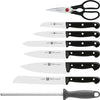 The ZWILLING Twin Chef 9 Pc Knife Block Set (Model: 34936-200) is a comprehensive collection designed for both hobbyist and professional chefs who prioritize high-quality knives in their kitchen. This set is a part of the TWIN Chef series and stands out with its exceptional features and precision-engineered design. From the precision-engineered blades to the ergonomic handles and practical storage solution, every aspect of this set is designed to enhance your culinary experience. Whether you're a seasoned chef or an enthusiastic home cook, this knife set provides the tools you need to tackle any kitchen challenge with confidence and precision.