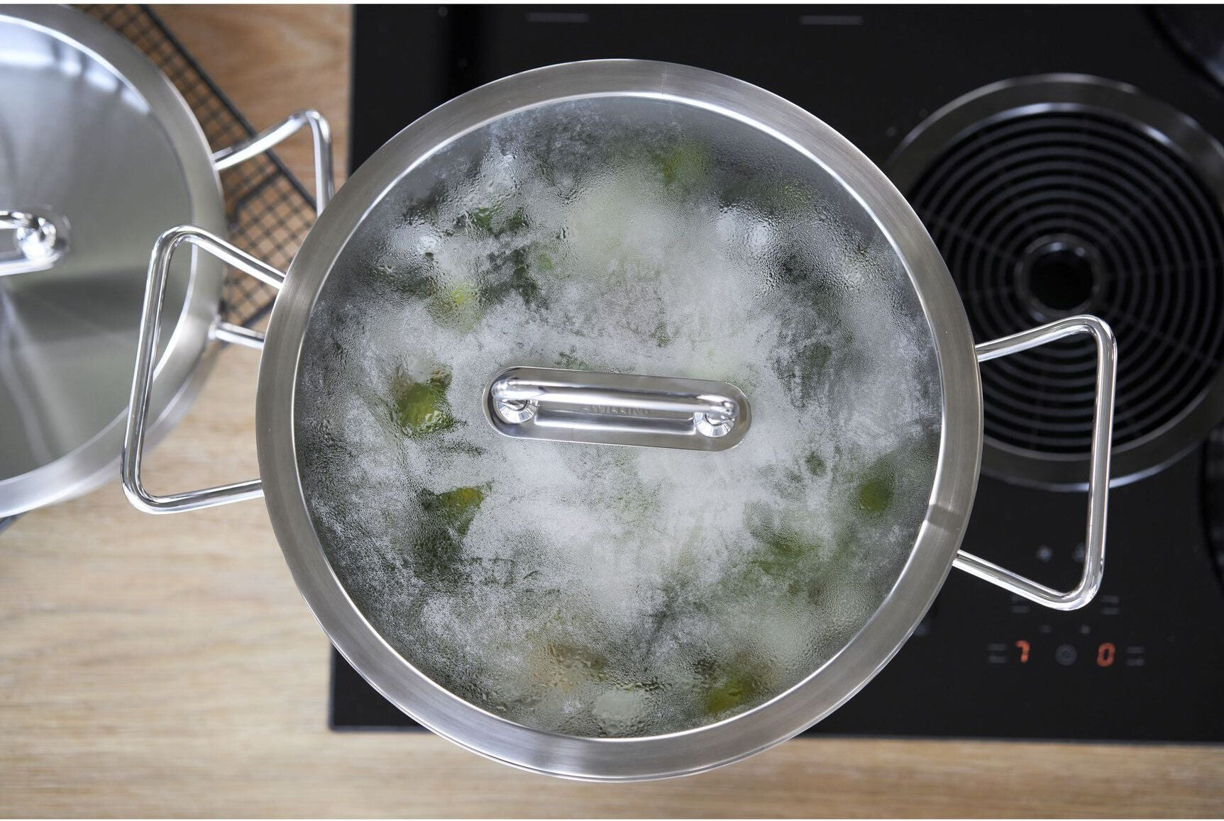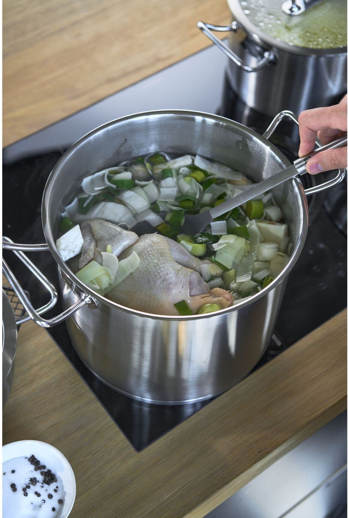 We are sure: Born hosts will love the high-quality cookware from the ZWILLING Pro series. Because this series sets standards in terms of quality, diversity and, above all, design. A tall pot for high demands. The high saucepan with a diameter of 24 cm and a large capacity offers plenty of space to stir without the contents going wrong. The practical filling scale on the inside of the pot reliably shows how much liquid is in the saucepan. The SIGMA Classic + sandwich base with several layers ensures that the heat is evenly distributed up to the side edge and stores it for a particularly long time. But the pot can also score from the outside: the 18/10 stainless steel has an elegant and scratch-resistant satin finish. The wide handles with a discreet logo plate round off the design.