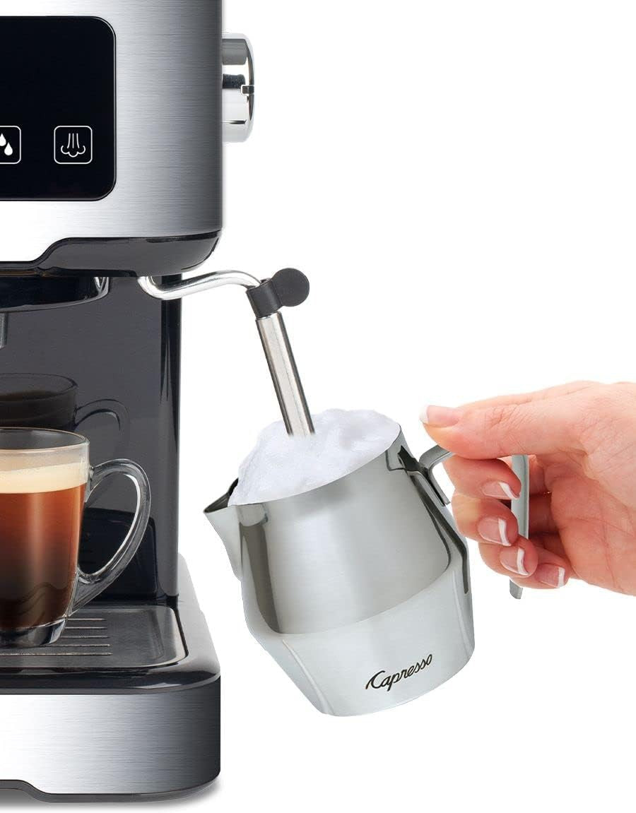 The Capresso Black Café TS is the espresso aficionado's ultimate companion, designed to deliver a flawless espresso brewing experience along with the versatility to create steaming lattes and frothy cappuccinos. With its sleek stainless housing and intuitive touchscreen interface, it combines elegance with functionality to redefine your coffee ritual.