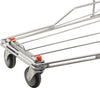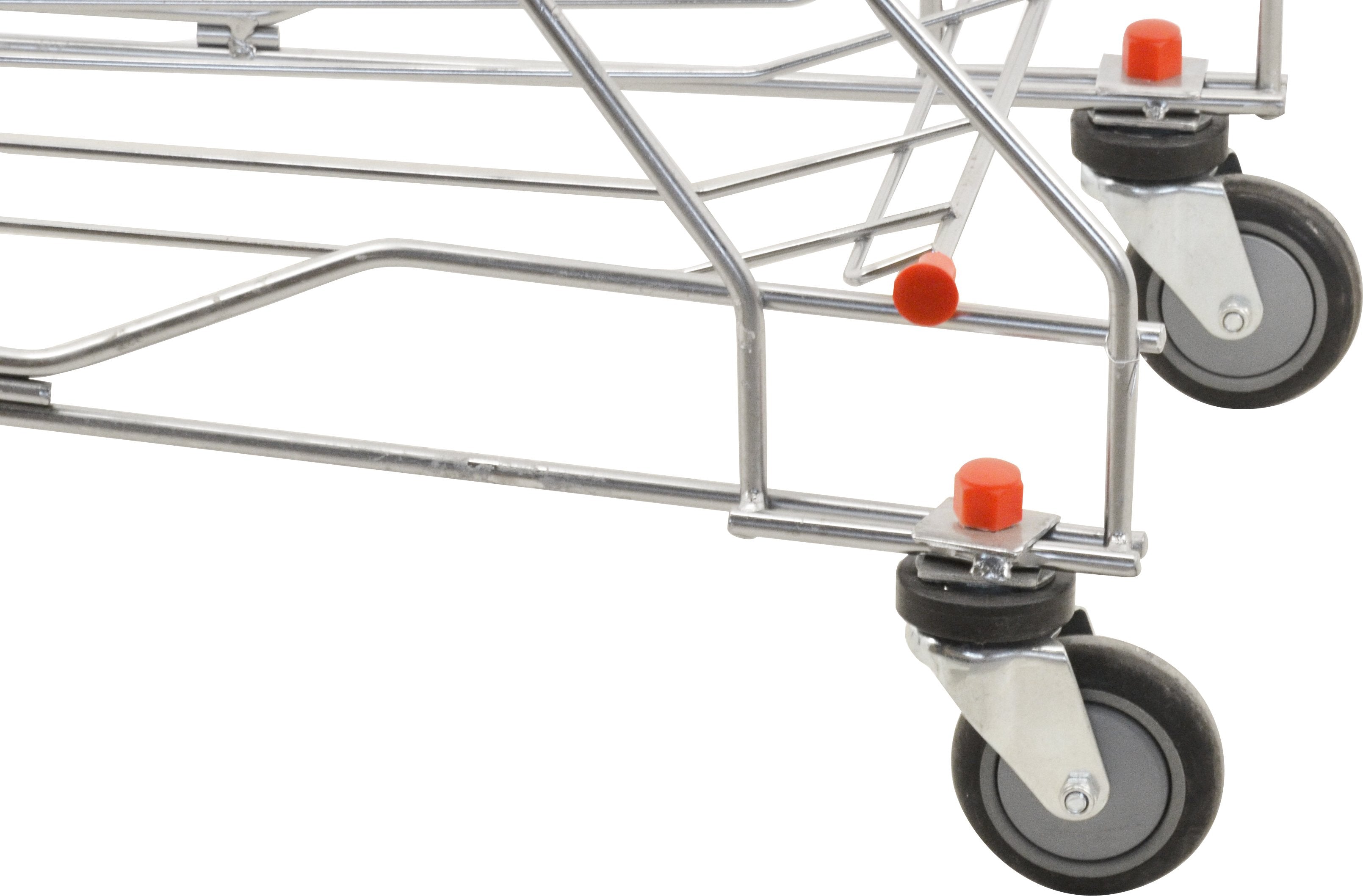 This shopping cart is manufactured using high-grade zinc, chrome and plastic. It comes with two front swivel casters and two fixed rear casters for effortless mobility. This cart has a red plastic handle and corner guards. The convenient child seat has a restraining strap for added safety.