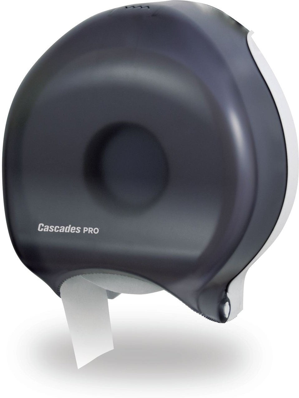 The "Cascades Tissue Group - Single JRT Toilet Tissue Dispenser" refers to a specific type of toilet tissue dispenser provided by Cascades Tissue Group. This dispenser is designed to hold and dispense a single jumbo roll of toilet tissue. It's commonly utilized in restrooms, commercial spaces, or public facilities to offer a convenient and hygienic way of providing toilet paper to users. The single JRT (Jumbo Roll Toilet) dispenser ensures that a large quantity of toilet tissue is available for use, reducing the frequency of refills and maintenance.