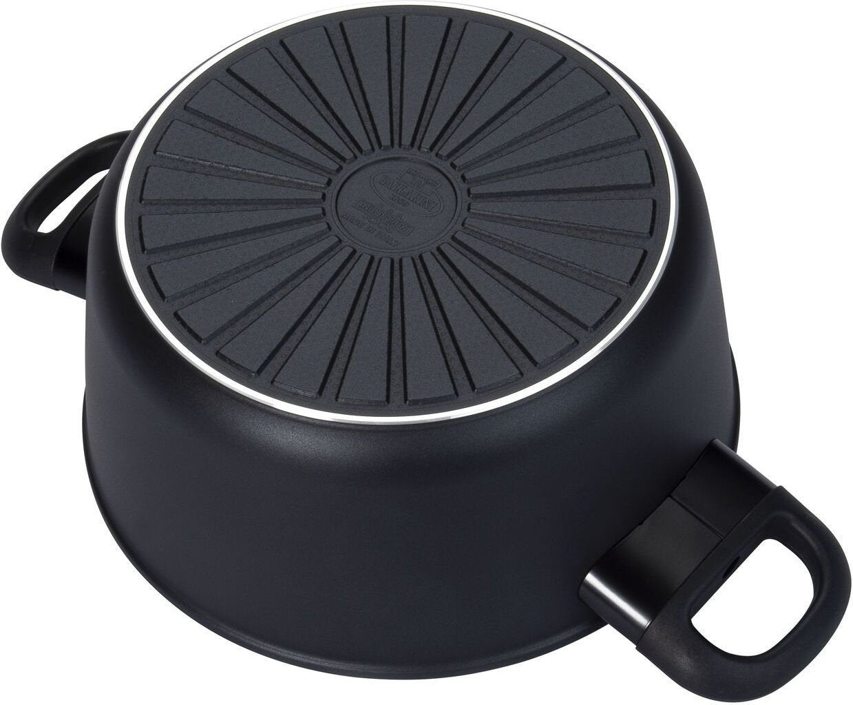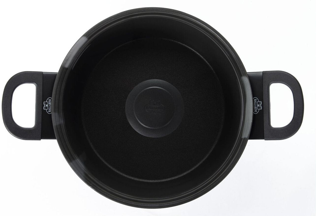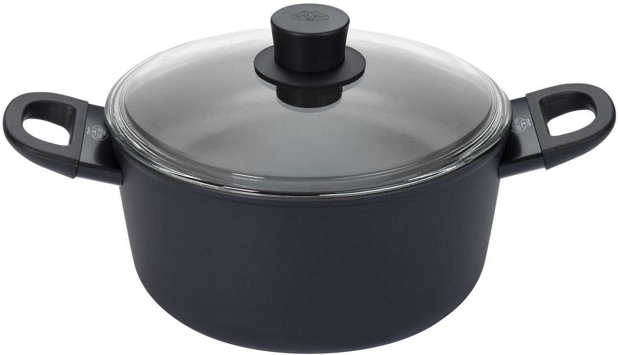 Have you ever tried one-pot pasta? If not, the 24 cm diameter pot offers the perfect opportunity. The trendy dish is not only versatile but also time-saving - just like the cooking pot with a glass lid from the Avola series by BALLARINI. Onions, garlic, vegetables, meat, and more can be fried perfectly thanks to the 3-layer KERAVIS Extreme non-stick coating. And you can avoid unsightly residue later when cleaning. After the frying process, deglaze with broth or water and add the uncooked noodles. So everything braises in one pot and the flavors are retained. Complete! Of course, the cookware is dishwasher safe. The high-quality glass lid allows a view of the simmering food creation. The base, which consists of a bimetal made of aluminum and steel, is suitable for induction. This also ensures quick and even heat distribution. Not just with induction, but on all types of stoves, so that long waiting times until the ideal cooking and frying temperature is reached are avoided. This saves additional energy when cooking. Not only connoisseurs of Italian design will notice the beautiful cast look, which owes its elegant appearance to the black powder coating. It was designed by the Milan studio Matteo Thun & Antonio Rodriguez. Your guests are guaranteed a large portion of soul food when you prepare your dishes in this cooking pot. With its generous diameter, it is ideal for Italian pasta classics, tender meat dishes, or crunchy vegetable creations. Even if there are many hungry “amici” waiting at the table.