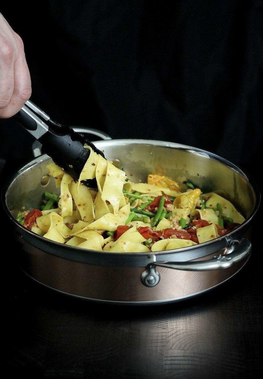For ground breaking innovation, ultimate performance and modern elegance, equip the kitchen with a Hestan CopperBond Induction Copper 3.5qt Saute Pan. With its wide surface area and vertical sidewalls, this versatile saute pan is ideal for searing, browning, simmering, braising and one-pot meals.