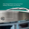 - Flush Rivets: Ergonomic stainless steel handles are secured to the pan with dual flush rivets, preventing food buildup and allowing for easy nesting storage.