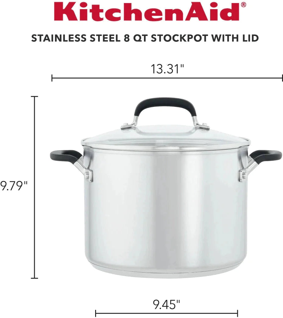KitchenAid - 8 QT Brushed Stainless Steel Stock Pot with Measuring Marks and Lid - 71022-TF05