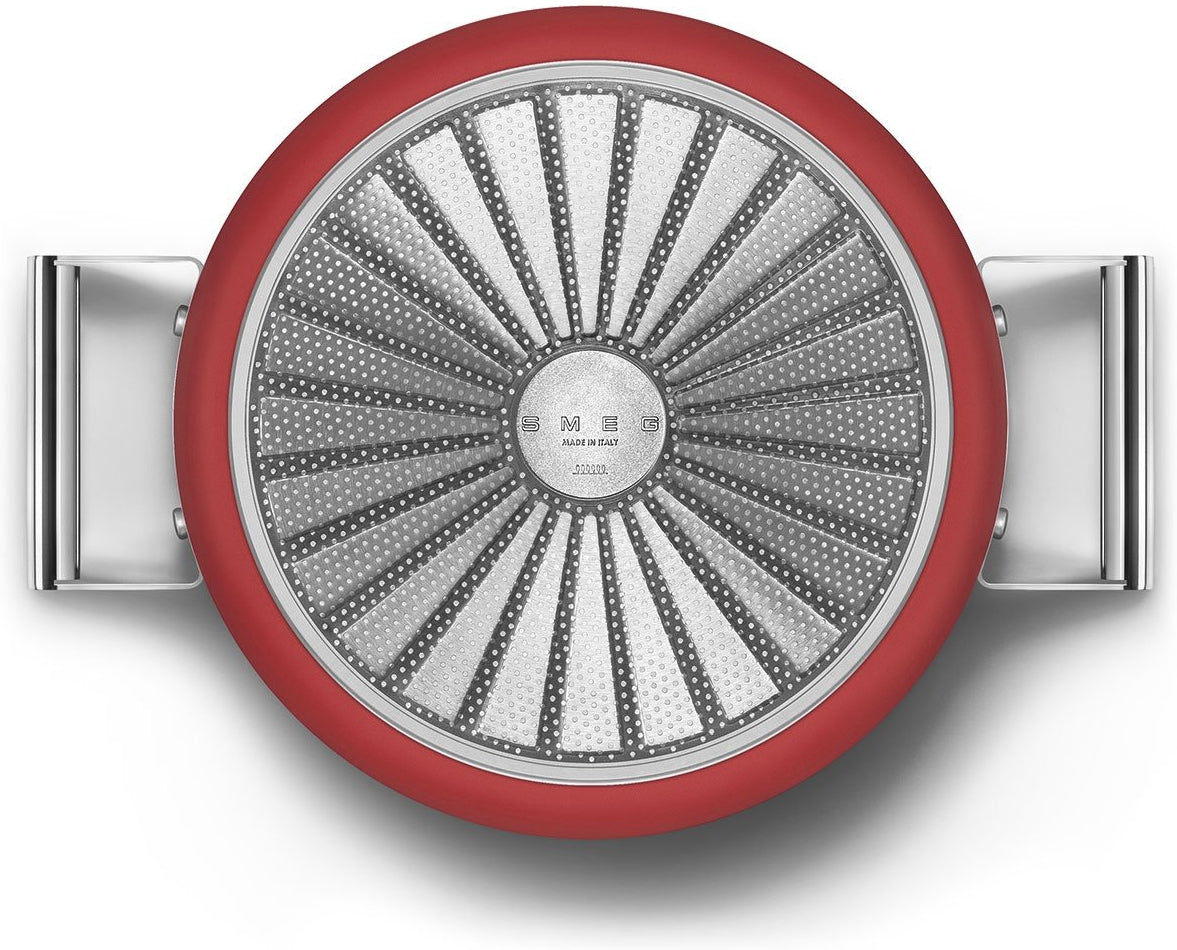 The Smeg cookware range can be put in the dishwasher for easy cleaning. Handle slots ensure optimum water drainage when washing.