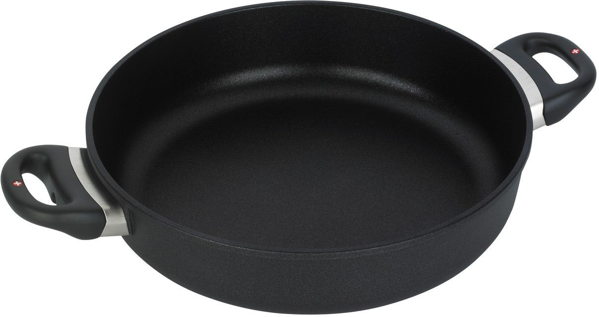 The Swiss Diamond XD series features a reinforced nonstick surface (real diamonds in a high quality composite) which provides years of trouble-free cooking and easy clean-up. Its extra thick, cast aluminum body with a perfectly-flat base will not tip/spin or warp as it provides uniform heat distribution. The rivet-free cooking surface provides maximum protection against bacteria while the comfortable, ergonomic handles are designed to stay cool on the stovetop. Oven safe to 500°F (260°C).