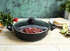 Begin your favourite recipe on the stovetop and finish it in the oven with the Swiss Diamond 11 inch (3.7-quart) Induction Sauteuse. With a cooking depth of approximately 2.4 inches, this piece is the ideal size for easy stirring and fits comfortably on an oven rack allowing room for other bake ware. The tempered glass lid is clear to prevent overcooking and has reinforced stainless-steel rims for added durability. A sliding lever in the knob opens for optional venting.