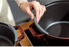 The set features a 5.3 QT/5.1L round cocotte, 3.6 QT/3.5L braiser, 10”/26CM grill pan, and a universal lid that can be used on each piece. Cook soup on the weekend in the cocotte, braise chicken thighs midweek in the braiser, and grill burgers on the grill pan for a quick family meal. The set price boasts a 30% savings over buying each piece individually. Attachable rubberized bumpers are included to ensure each piece remains scratch-free when stacked and unstacked.