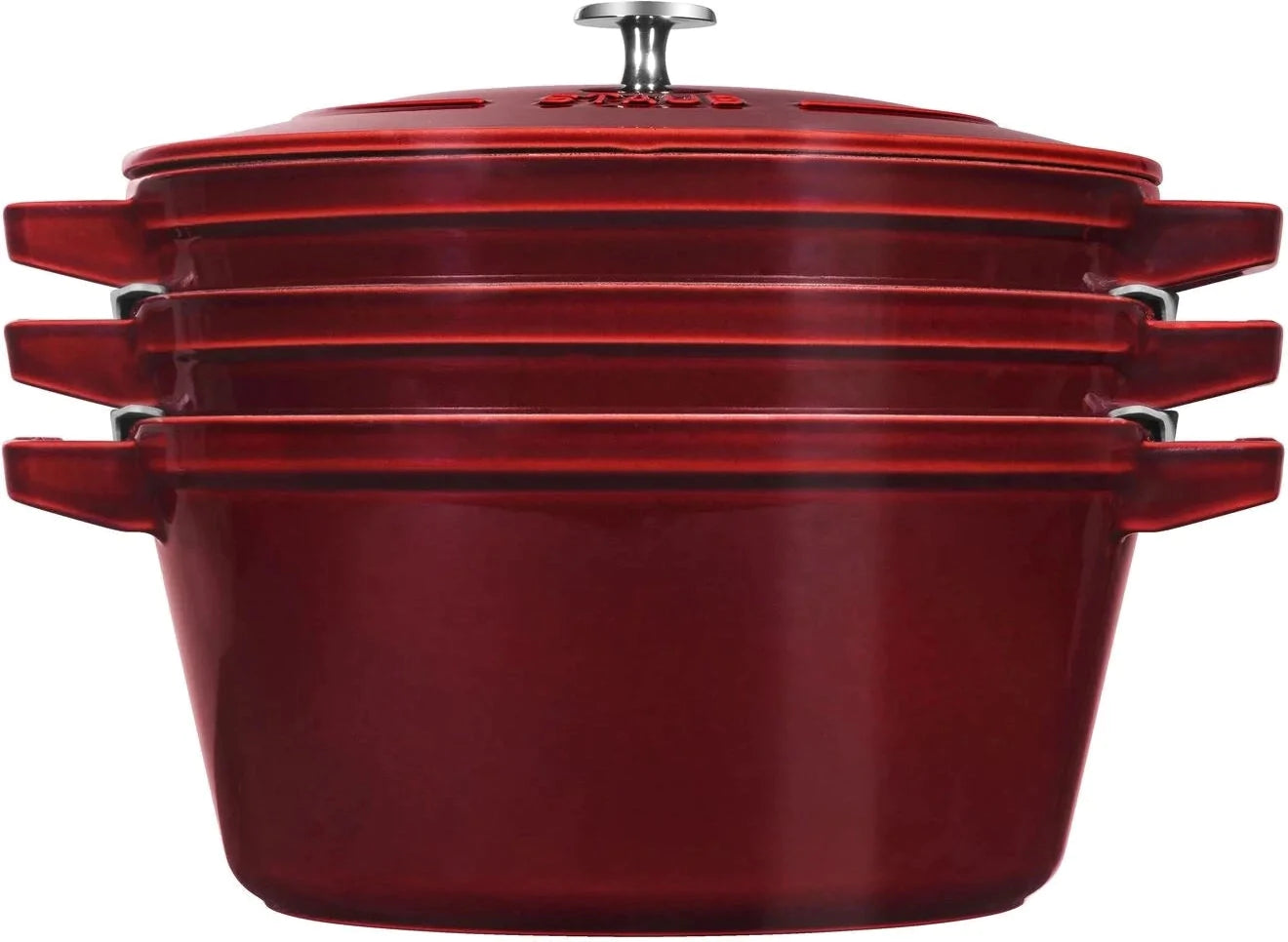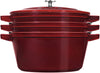 Staub - 4 PC 10" Cast Iron Stackable Cocotte Set Grenadine - 1010768