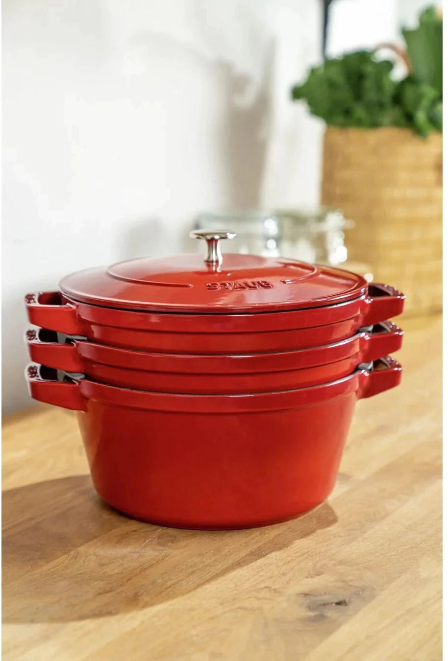 STAUB Stackable is the ultimate spacing-saving set featuring the essential cookware pieces for all the ways you like to cook. Thoughtfully designed with sloped sides to accommodate nesting, STAUB Stackable fits neatly into any storage area, including shelves, cupboards, and pot drawers.