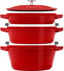 Staub - 4 PC 9.5" Cast Iron Stackable Cocotte Set Cherry - 1010887