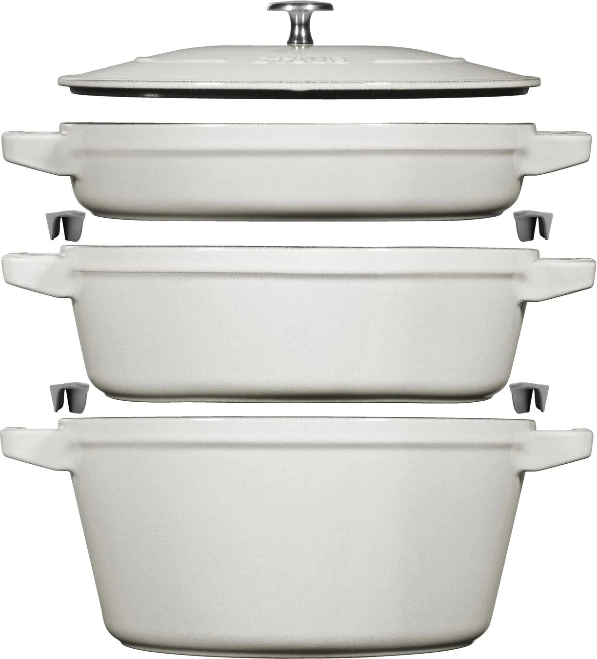 Staub - 4 PC 9.5" Cast Iron Stackable Cocotte Set White Truffle - 1010892
