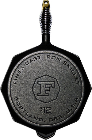The most versatile pan you’ll ever own. The FINEX cast iron skillet is polished smooth for perfect eggs every time. It’s a searing machine for hearty steaks, chops and salmon. It’s brilliant for baking perfect cornbread, pies and cakes. Eight flat sides make it easier to get a spatula behind the crust on cornbread, pizza and other baked goods and make it easier to squeeze a couple skillets into a crowded oven. From stovetop, to oven, to grill—even over the coals—the FINEX cast iron skillet is a trusted essential you’ll pass down for generations. Wound from 300 series stainless steel rod stock and hand polished to high luster, our handles stay cool longer, cool off quicker and feel better in the hand. Inspired by vintage wood stove door handles, they bring high-end fit and finish to a time honored design. ready to cook right out of the box, each cast iron piece comes pre-seasoned with 100% organic flaxseed oil to a non-stick, rust resistant bronze finish that will patina, darken and continue to improve as you cook.
