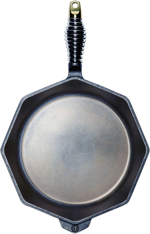 The polished, easy-to-release, near-nonstick cooking surface is simply cast iron & organic flaxseed oil. The patented octagonal shape makes it easier to release cornbread & each spout is another opportunity to pour stews without dripping on the table. Thicker castings optimize searing to seal in flavours. Ergonomic spring handles temper heat for an easier grip while cooking.