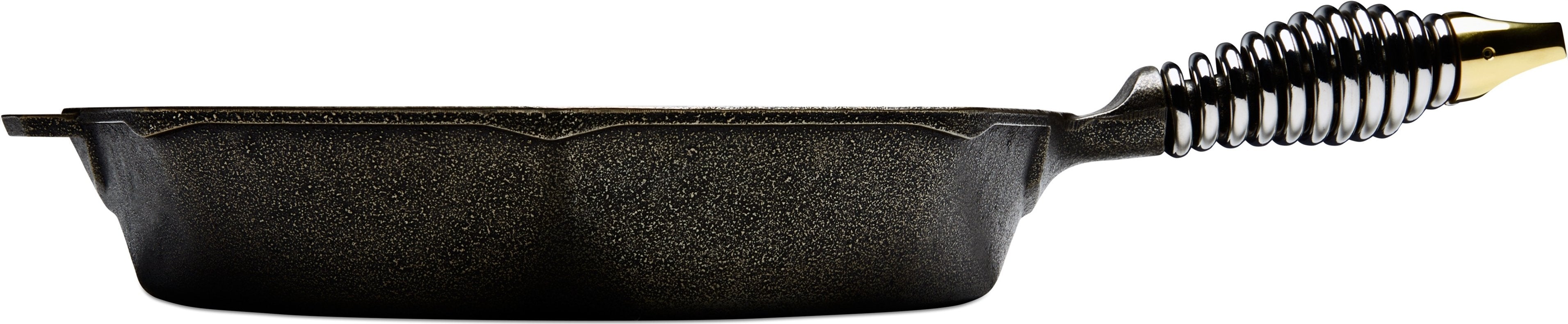 The polished, easy-to-release, near-nonstick cooking surface is simply cast iron & organic flaxseed oil. The patented octagonal shape makes it easier to release cornbread & each spout is another opportunity to pour stews without dripping on the table. Thicker castings optimize searing to seal in flavours. Ergonomic spring handles temper heat for an easier grip while cooking.