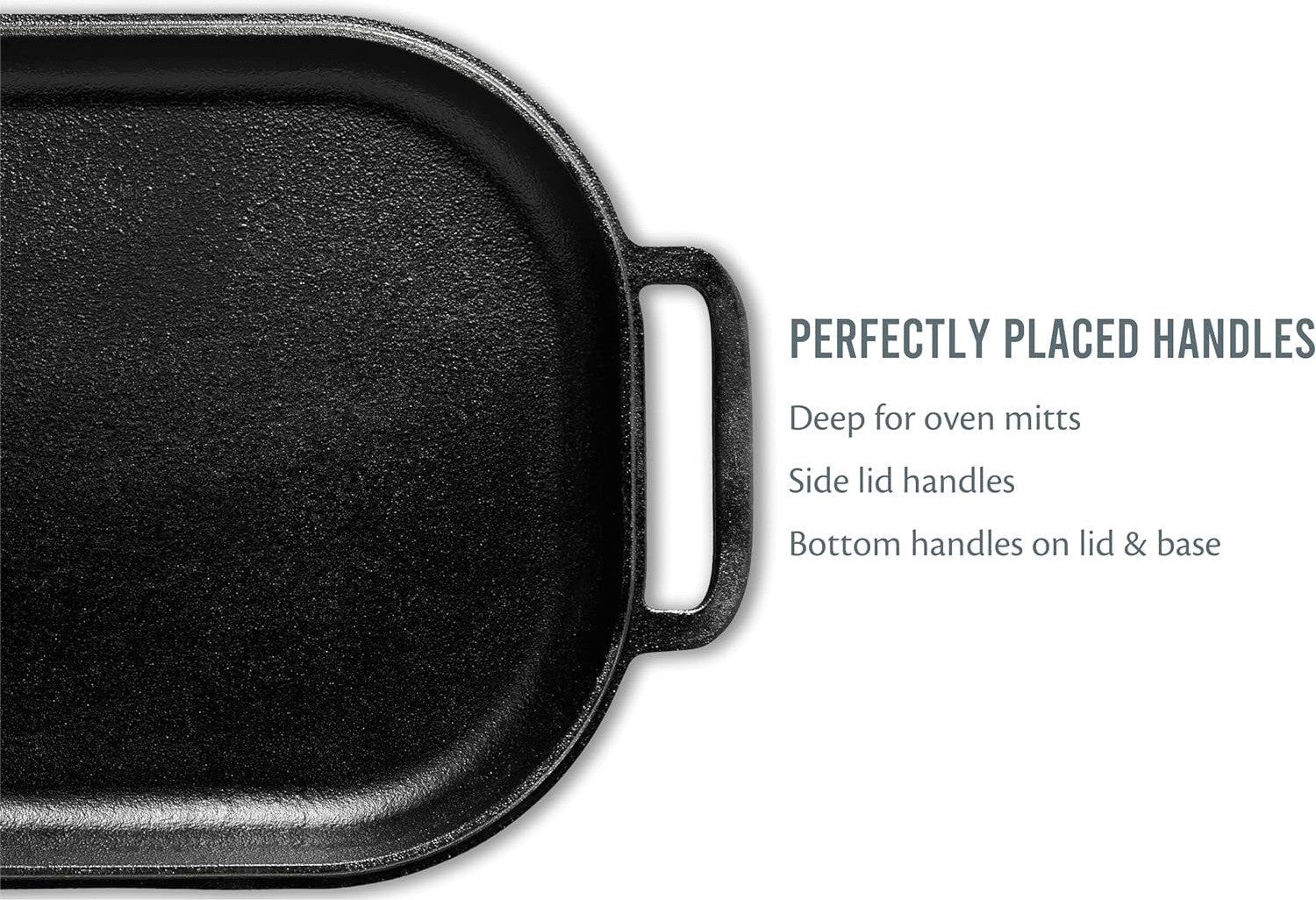 - Improved Ergonomic Handles: Newly designed, easy-to-use handles ensure safe lifting and handling, even when wearing oven mitts.
