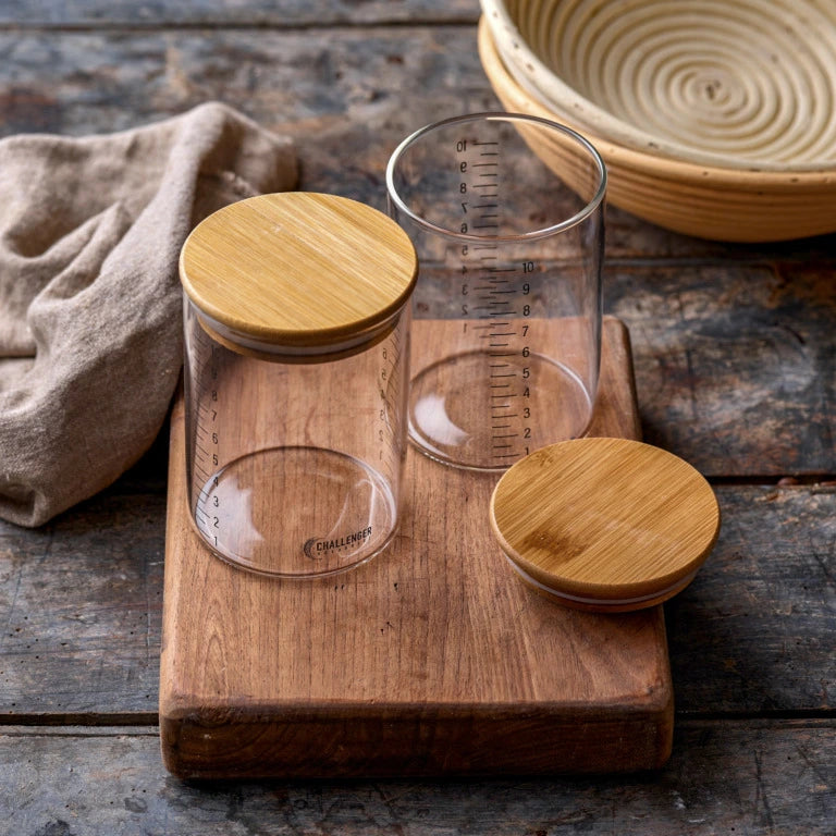 Designed specifically for sourdough bakers, the Challenger Breadware Sourdough Starter Jar Set is the perfect home for nurturing and tracking the growth of your starter. Made from heat-resistant borosilicate glass, these durable and non-porous jars are free from harmful chemicals like lead and BPA, ensuring a safe environment for your sourdough culture. The eco-friendly bamboo lid with a silicone ring provides an airtight seal, making it easy to maintain the right conditions for a healthy starter. With ruled lines on the jar, you can effortlessly track your starter’s growth over time, making sourdough baking more enjoyable and precise. Recognized as a New York Times Wirecutter Top Pick, these jars offer quality and convenience.