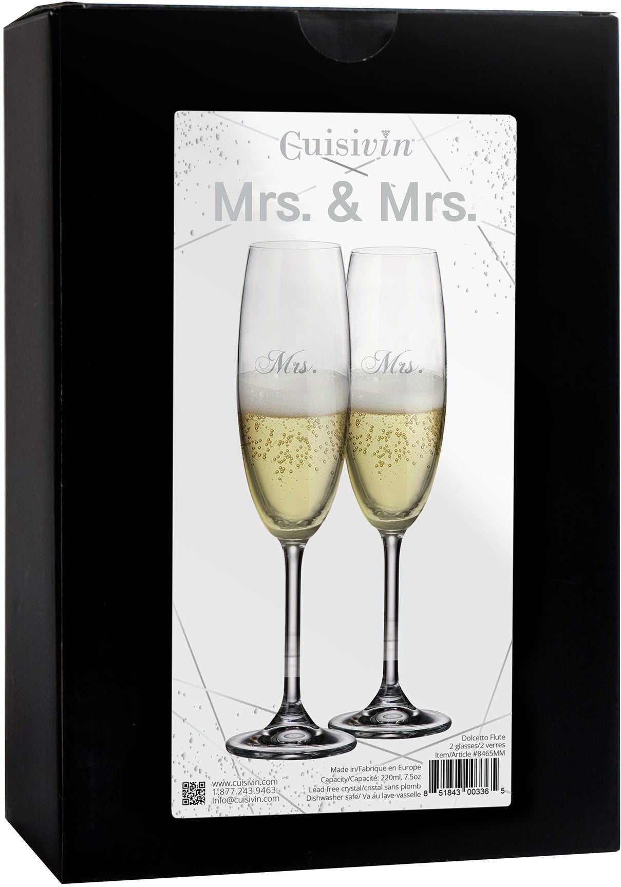 Cuisivin - 7.5 oz Mrs. & Mrs. Champagne Flute Glasses, Pack of 2 - 8465MRS