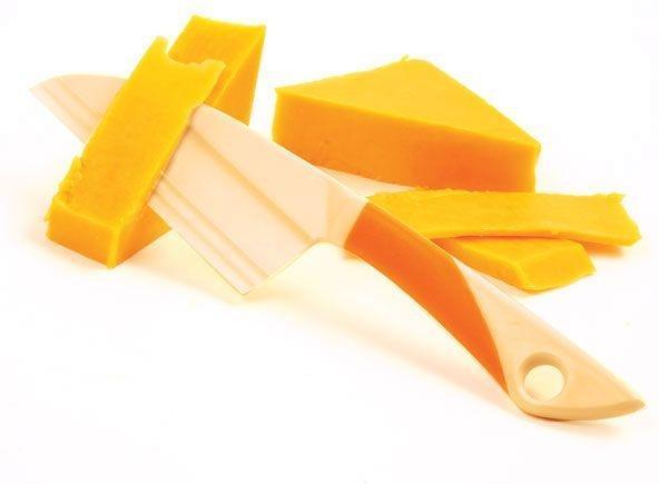 Revolutionary material and design keeps cheese on plate, not on knife. Works with soft cheeses, butter, fois gras, boiled eggs, cakes, desserts and anything that typically leaves residue on ordinary blades.