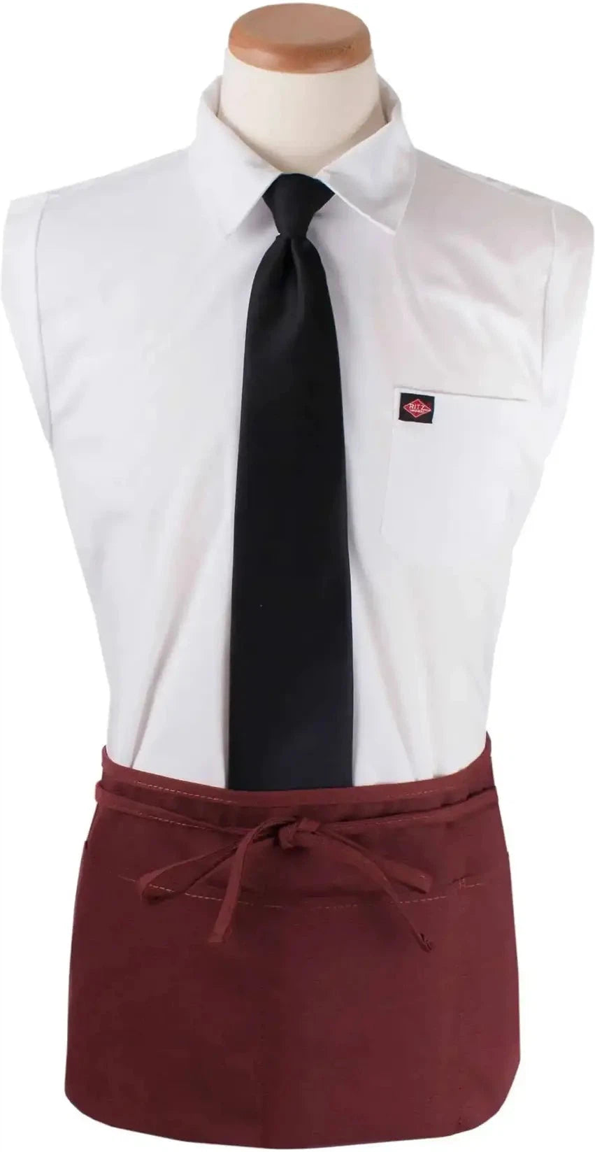 The Chef Revival Chef's Line® 25" x 11" Polyester Burgundy 3 Pocket Waist Apron with Pan Pocket is a practical and durable apron designed for professional chefs and kitchen staff. Made from fade-resistant polyester, this apron ensures longevity and maintains its vibrant burgundy color even after frequent use. It features three deep pockets and one pen pocket, providing ample storage for essential tools, utensils, and other items. The long strings on each side allow for a secure and adjustable fit, making it suitable for various body types. The rich burgundy color adds a touch of elegance, ensuring your kitchen staff always looks professional.