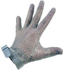 Stay protected while cutting meats and vegetables with the Omcan Extra Small Five Finger Stainless Steel Mesh Glove. Designed for maximum safety and durability, this glove features superior cut resistance and an ultra-hygienic stainless steel mesh construction. The gray silicone strap ensures a secure and comfortable fit, making it an essential addition to any commercial kitchen or food processing environment.