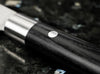 The Boker Damascus Black Kitchen Knife line combines traditionally Japanese handles made of black local Plywood with razor-sharp blades made of stainless Damascus with 37 layers of steel, characterized by a beautiful grain. The extremely high-impact core of the Damascus blade consists of the high-performance VG-10 steel. The noticeable sharpness when cutting is breathtaking and makes cooking an experience. The Japanese design of the knife handle with the matted stainless steel clamps gives the line its special character.