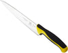 The Mercer Millennia Colors® 8" Chef's Knife with a vibrant yellow handle, designed to revolutionize your culinary experience with precision, safety, and comfort. Crafted with a color-coded handle, this knife facilitates dedicated use applications, ensuring better food safety handling practices in your kitchen. The handle's yellow hue not only adds a pop of color but also serves as a visual cue for its intended purpose. Forged from a single piece of high-carbon Japanese steel, this knife guarantees easy edge maintenance and rapid sharpening, ensuring a consistently razor-sharp edge for effortless cutting every time. Experience unparalleled grip and comfort with the raised Santoprene® textured handle. Its ergonomic design incorporates textured finger points, providing slip resistance and enhanced safety during use. Additionally, a protective finger guard adds an extra layer of safety, allowing you to focus on your culinary creations with peace of mind. Combining Santoprene® for comfort and polypropylene for durability, the ergonomic handle ensures optimal balance and control, reducing fatigue even during prolonged use. Elevate your culinary prowess with the Mercer Millennia Colors® 8" Chef's Knife, where precision, safety, and comfort converge for an unparalleled cooking experience.