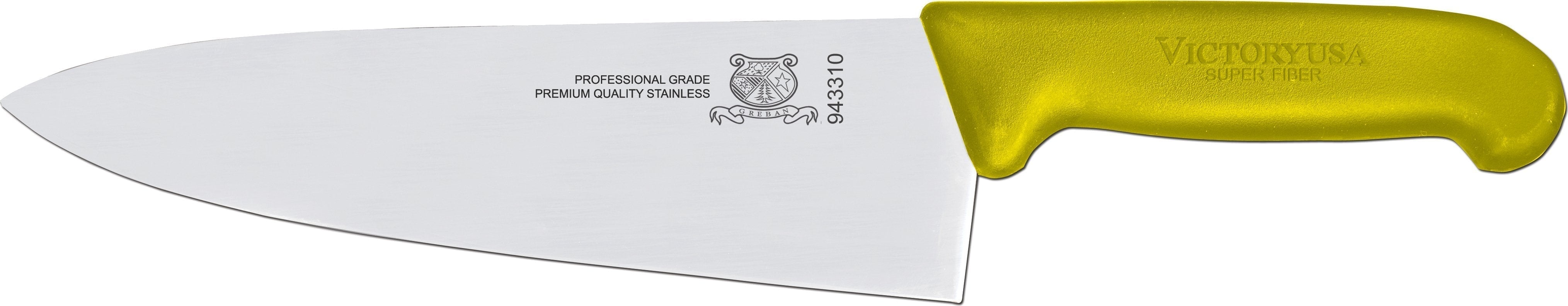 Omcan - 8” Yellow Super Fiber Handle Medium Cook's Knife, Pack of 4 - 23877