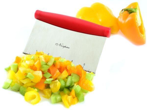 A great kitchen tool with a wide variety of uses! Designed to scrape and split bread dough, it can also be used for scraping, crushing, chopping and measuring! With its soft grip santoprene handle and straight-sided rectangular blade, this scraper is the ideal tool to chop and divide cookie dough and pastry dough for rolls and loaves. Also ideal for cinnamon rolls, jelly rolls, brownies, rice crispy treats, dessert bars and more! Measuring guide on the blade allows you to easily measure and cut pasta and pastry dough. Handy for scraping up ingredients to easily transfer to a mixing bowl or for cleaning flour off your work surface. Ideal for chopping vegetables, herbs, garlic, and nuts! Durably constructed with stainless steel blade. Comfortable santoprene handle, easy to grip for extra control.