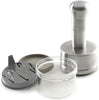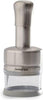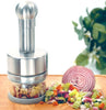 This easy to use food chopper will make short work of chopping chores. Blades rotate 60 degrees after each time the knob is pressed, evenly chopping items. Two rotating blades keep food off of the sides while chopping. Includes a lid for the storage cup, so unused portion is covered while stored.