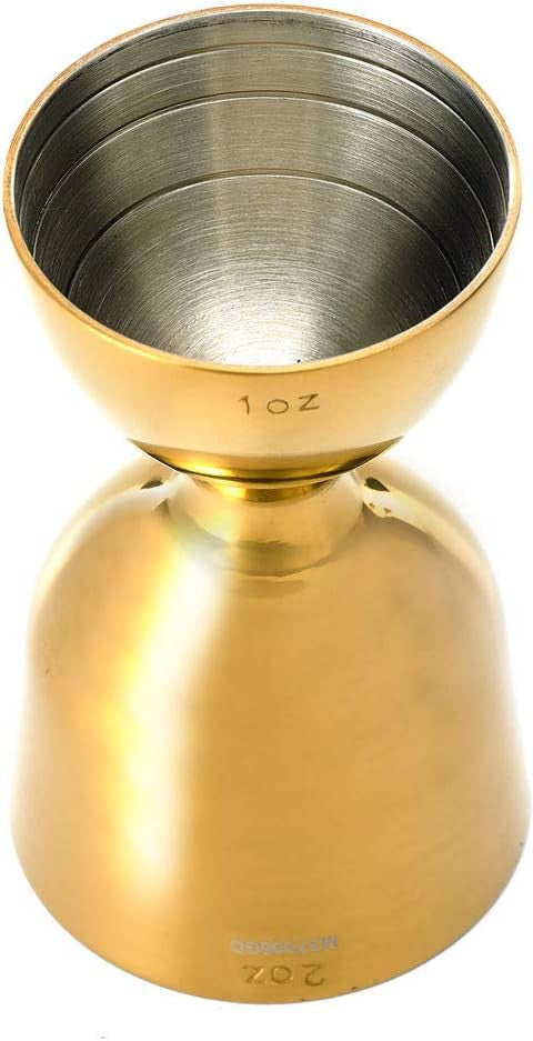 The luxurious gold plated finish of these bell jiggers makes them a standout addition to any bar setup or cocktail presentation. Whether you're serving drinks at a high-end cocktail bar or hosting a glamorous event at home, these jiggers are sure to impress guests with their stunning appearance and precision engineering. In addition to their luxurious design, these bell jiggers are also practical and easy to clean. Simply wash them by hand with warm, soapy water after each use, and they will maintain their gleaming gold plated finish for years to come. The heavy-duty construction ensures that these jiggers can withstand frequent use and remain in excellent condition, even with daily use in a busy bar environment. Whether you're a seasoned bartender or a home mixologist, the Barfly 1 x 2 oz Gold Plated Heavy-Duty Straight Rim Bell Jigger Set is an indispensable tool that will enhance your cocktail-making experience. With their luxurious design, precise measurements, and durable construction, these jiggers are sure to become a staple in your bar toolkit. Elevate your cocktail game and impress your guests with the opulence and functionality of the Barfly Gold Plated Bell Jigger Set.