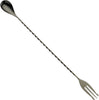 The Barfly 15.75" Gun Metal Black Stainless Steel Bar Spoon with Fork End , model M37016BK, is a meticulously crafted and versatile tool designed to enhance the precision and efficiency of mixing cocktails. This bar spoon features a unique fork end with three pointed tines, specifically engineered for effortlessly spearing and garnishing cocktail ingredients. The spoon's design incorporates a twisted handle, providing bartenders and mixologists with enhanced control and grip during stirring and mixing processes. This ergonomic design ensures a comfortable and effective handling experience, allowing for precise maneuvers while creating your favorite beverages.