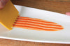 The Mercer 3.75" X 2.5" Saw Tooth Edge Silicone Yellow Wedge Plating Tool, designed to elevate your culinary presentation with precision and ease. With its vibrant yellow color, this tool is color-coded for easy identification, ensuring efficiency and organization in your kitchen. Crafted from food-safe silicone, it withstands temperatures up to 480°F (250°C), guaranteeing durability and safety during use. Featuring a recessed thumb rest, this plating tool offers a comfortable grip and enhanced control, allowing you to create intricate designs with confidence. Its 2 1/4" width enables broad patterns on plates or platters, facilitating versatile plating options for your culinary creations. Designed for convenience, this tool includes a hanging hole for easy storage, keeping your kitchen organized and clutter-free. And when it comes to cleaning, it's dishwasher safe, saving you time and effort in maintaining its pristine condition. Elevate your plating game with the Mercer Saw Tooth Edge Silicone Yellow Wedge Plating Tool, the perfect companion for professional chefs and culinary enthusiasts alike.