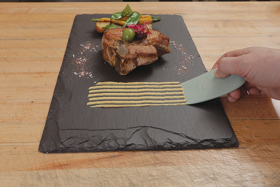 Whether you're serving an exciting appetizer, signature entree, or decadent dessert, this wedge's silicone construction can get the job done. The wedge tip is firm enough to create precise lines, while the silicone is flexible enough for ease of movement.