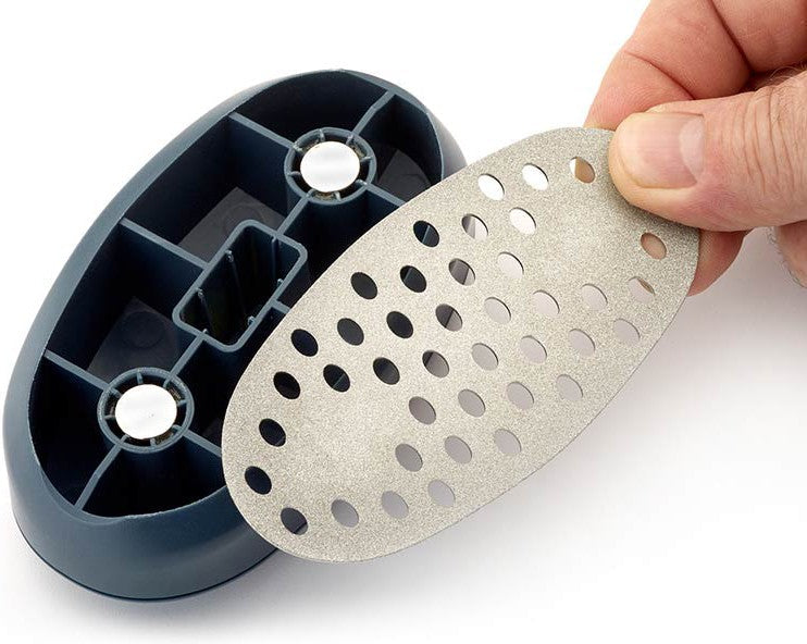 The Mercer 4.8" x 2.5" x 1.25" Two-Sided Diamond Flattening Stone Plate, designed with precision and ease of use in mind. Its unique mouse-shaped design ensures comfortable handling, making it effortless to achieve professional results. Crafted for efficiency, this versatile tool features a spirit level integrated into the top, streamlining surface correction and detecting uneven surfaces in a single step. Experience unparalleled convenience and accuracy with the Mercer Two-Sided Diamond Flattening Stone Plate, your go-to solution for maintaining sharp edges and pristine surfaces.