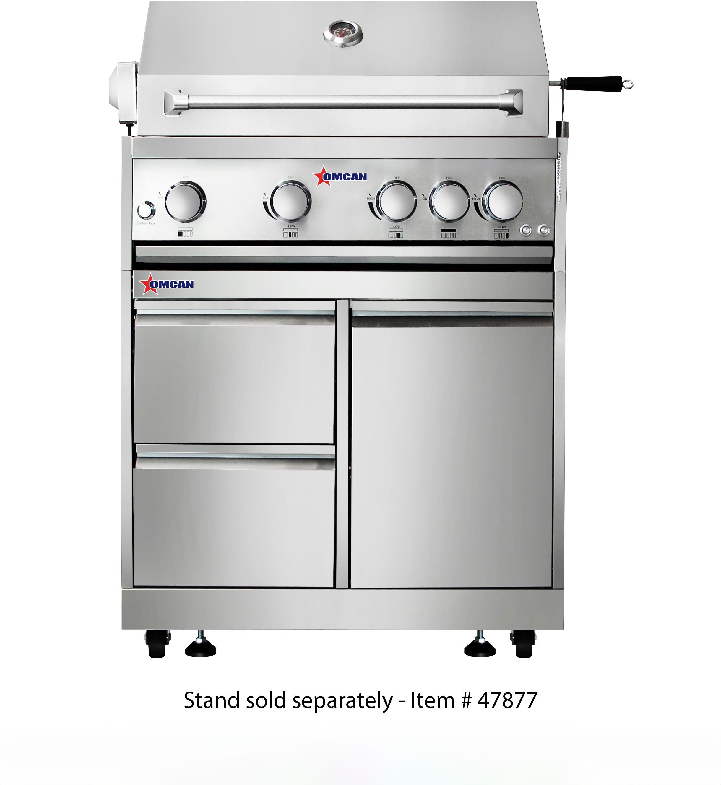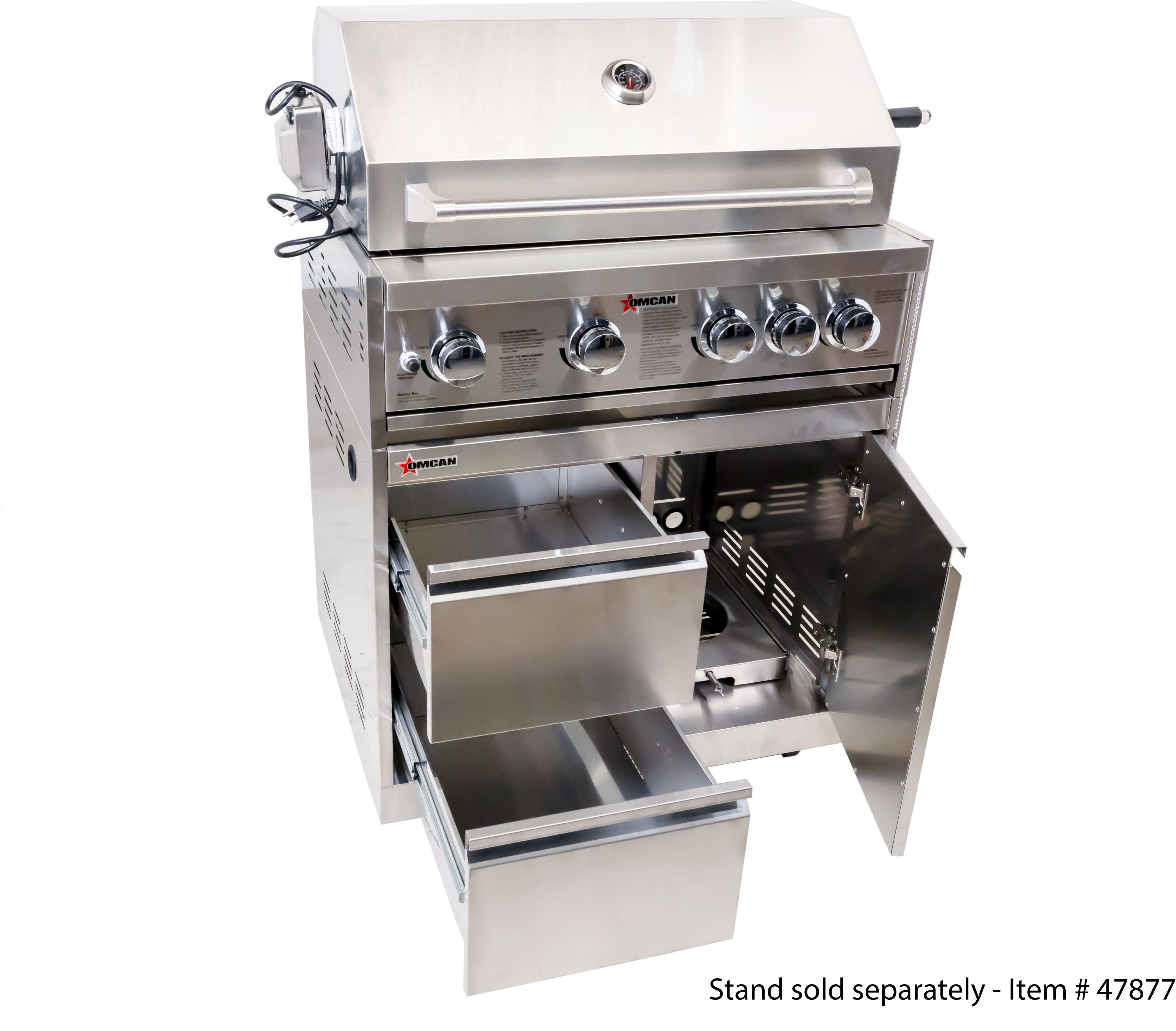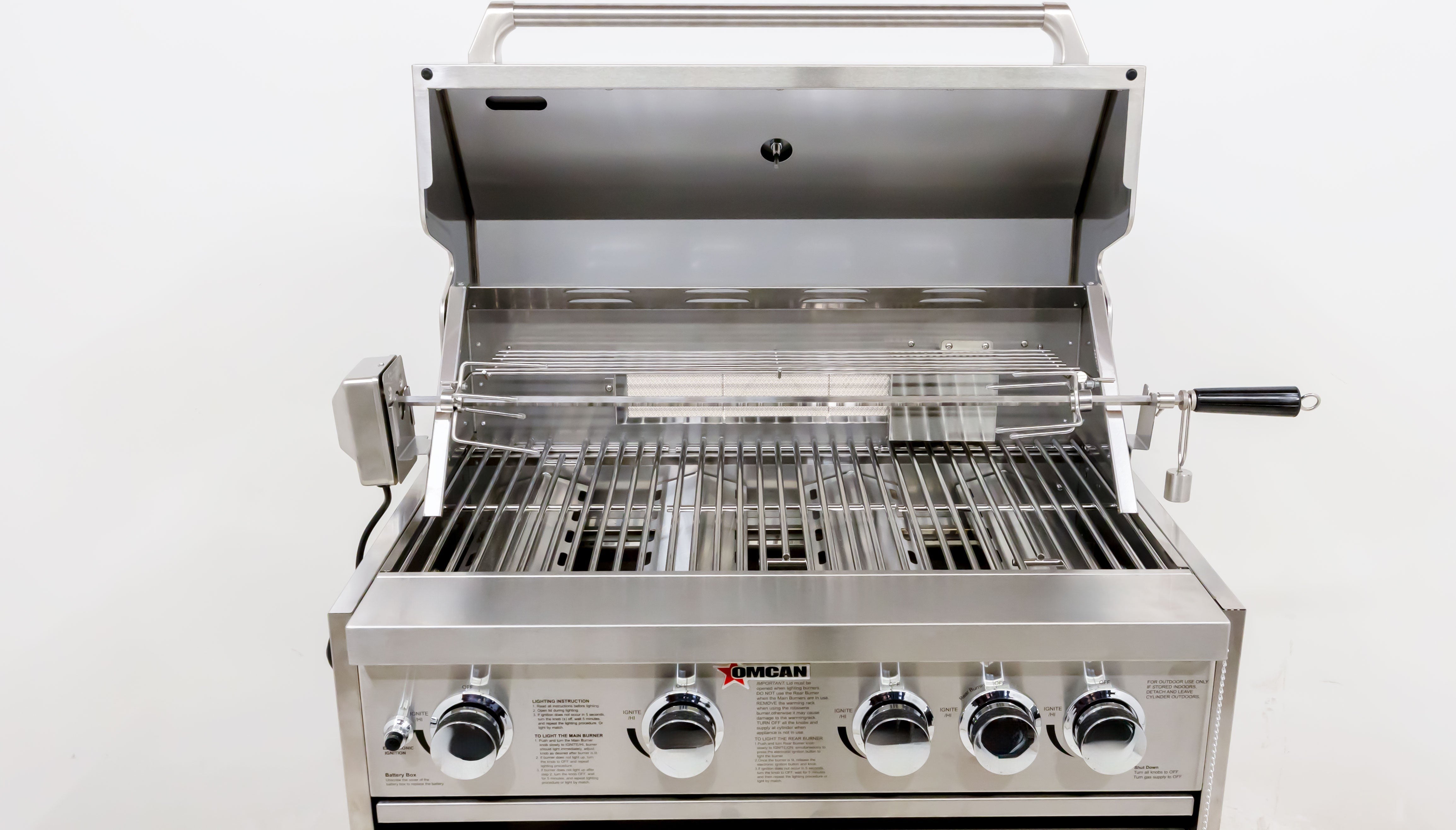 Omcan - 30", 5 Burners Propane Gas BBQ Grill with 58,000 BTU and Rotisserie Kit, Warming Rack - CE-CN-0030-B LP