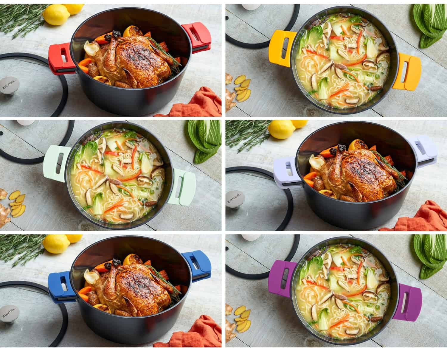 Black goes with everything, but a little colour brings life into the picture. That was the goal when we developed the Noir cookware collection with removable grips. We all have different taste when it comes to food, why should it stop there? Make your Noir cookware truly your own.  These colourful grips are bound to catch everyone’s attention.