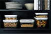 The Fresh & Save vacuum containers are designed to work with the vacuum pump to keep food fresh up to five times longer than non-vacuum storage. They are available in borosilicate glass or BPA-free plastic. Both versions are stackable and freezer, microwave (without vacuum seal), and dishwasher safe. Glass containers are ovenproof (without lid) and double as beautiful serving pieces at the table. Each container style is available in a range of sizes so you can store an entire leftover dinner, a light lunch, or a small to-go snack.